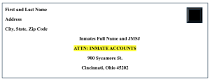 Money orders will only be accepted through the mail and are to have the following on the envelope. The money order is also required to have the inmate’s name and JMS# on it.